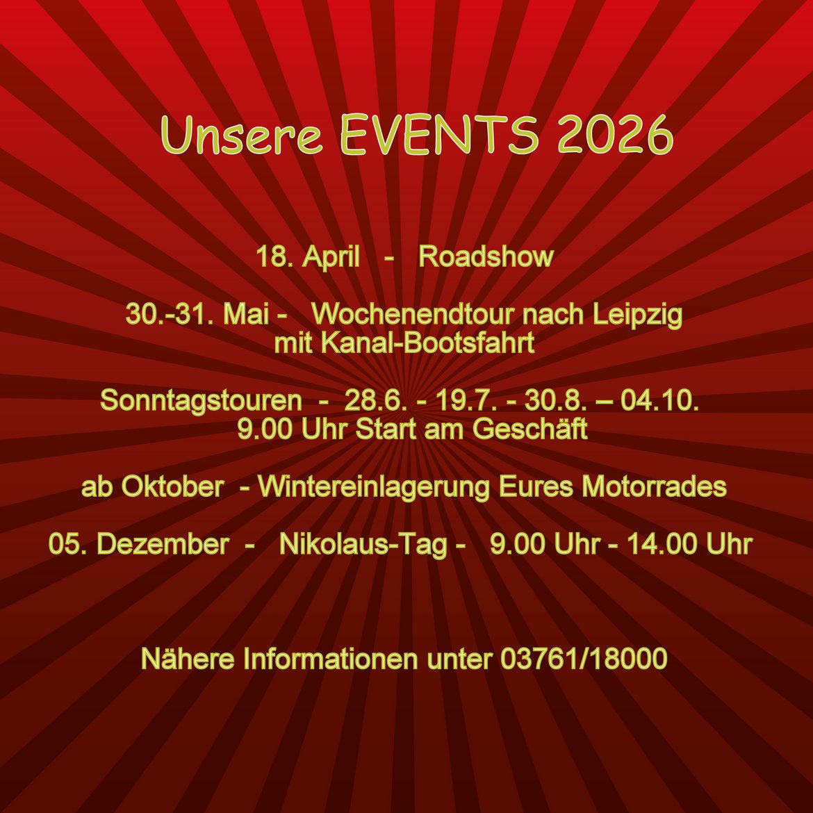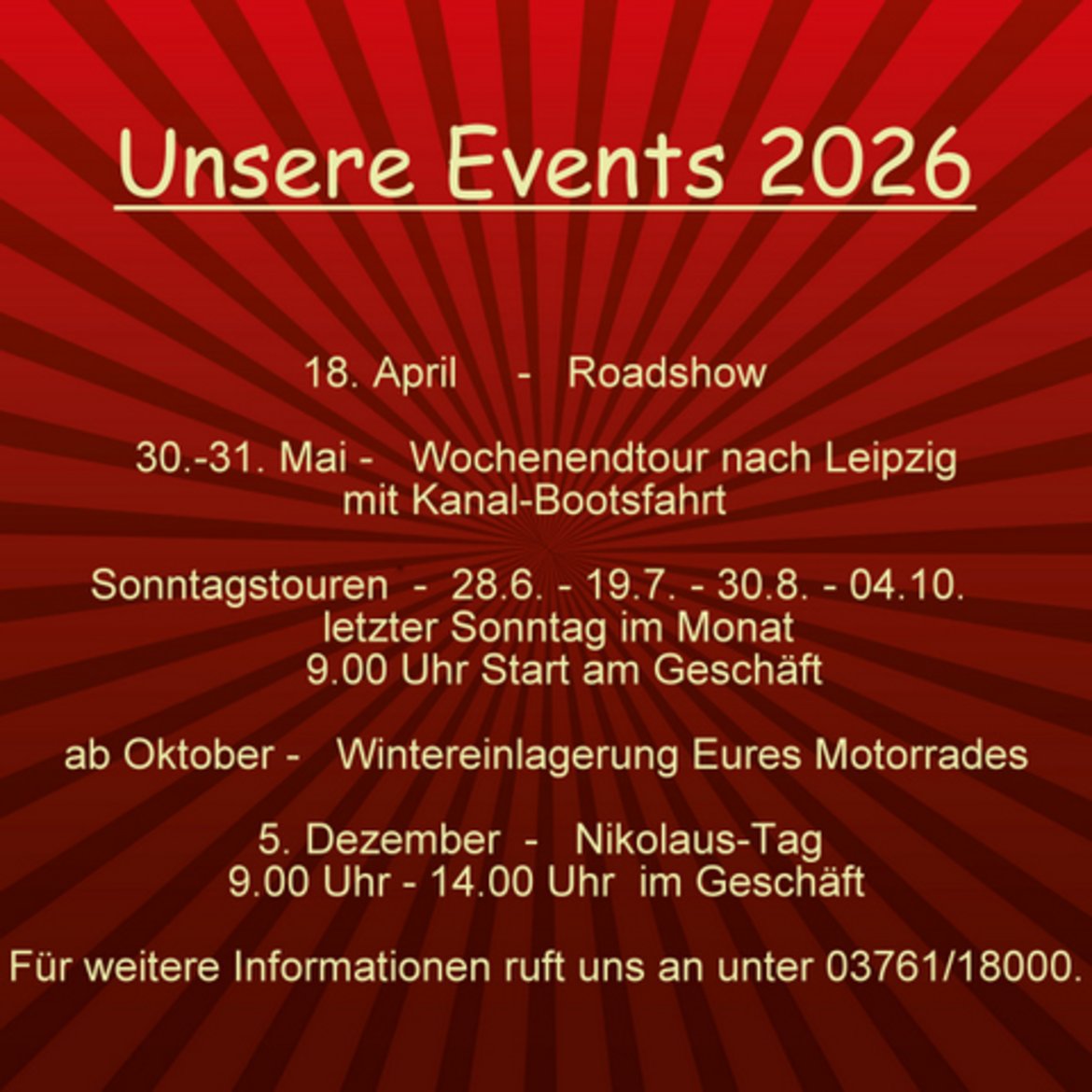 Schaut Euch gern unsere aktuell lagernden Neufahrzeuge online an und besucht uns im Geschäft. Wir werden Euch weiterhin gut beraten.
