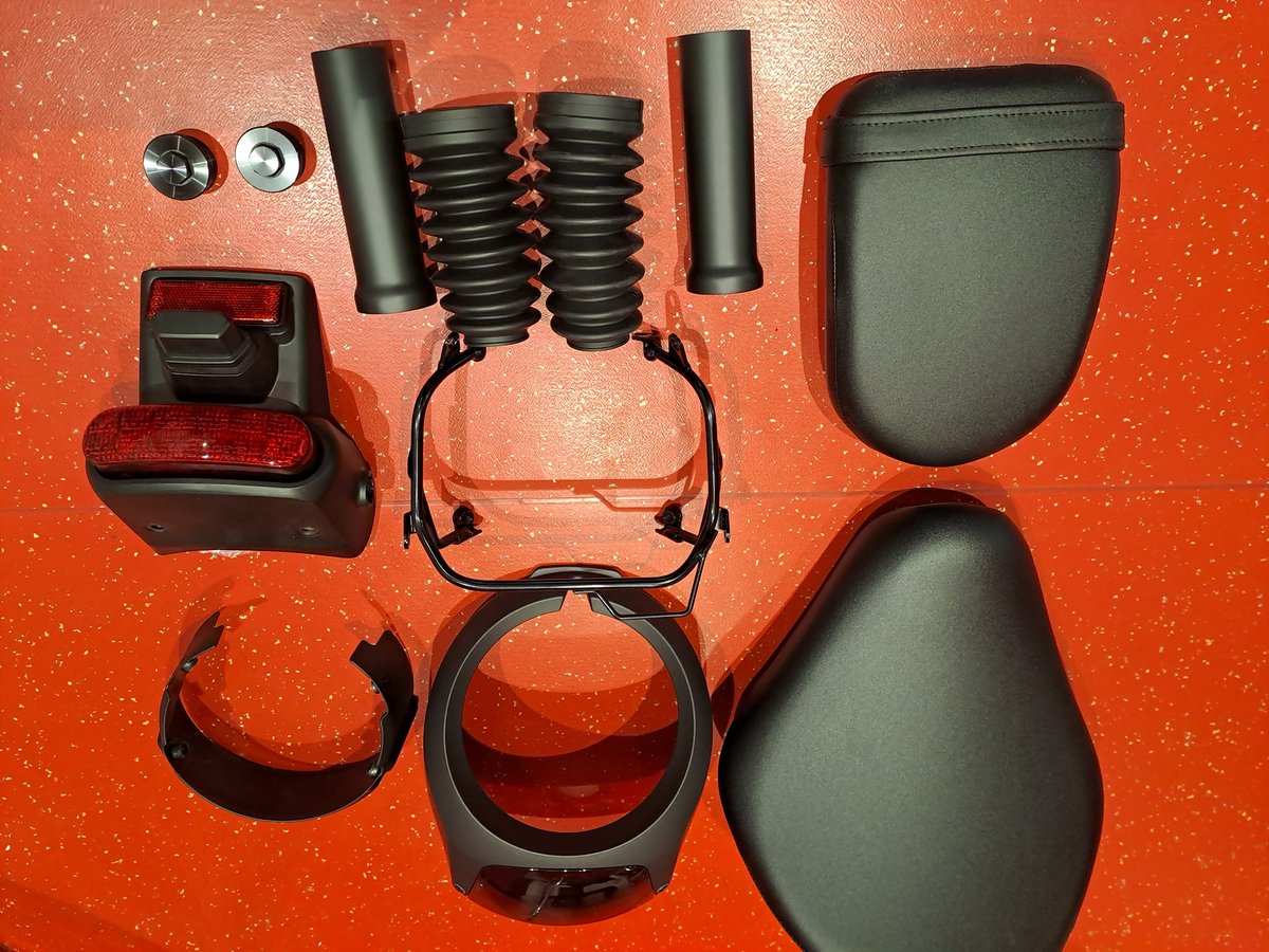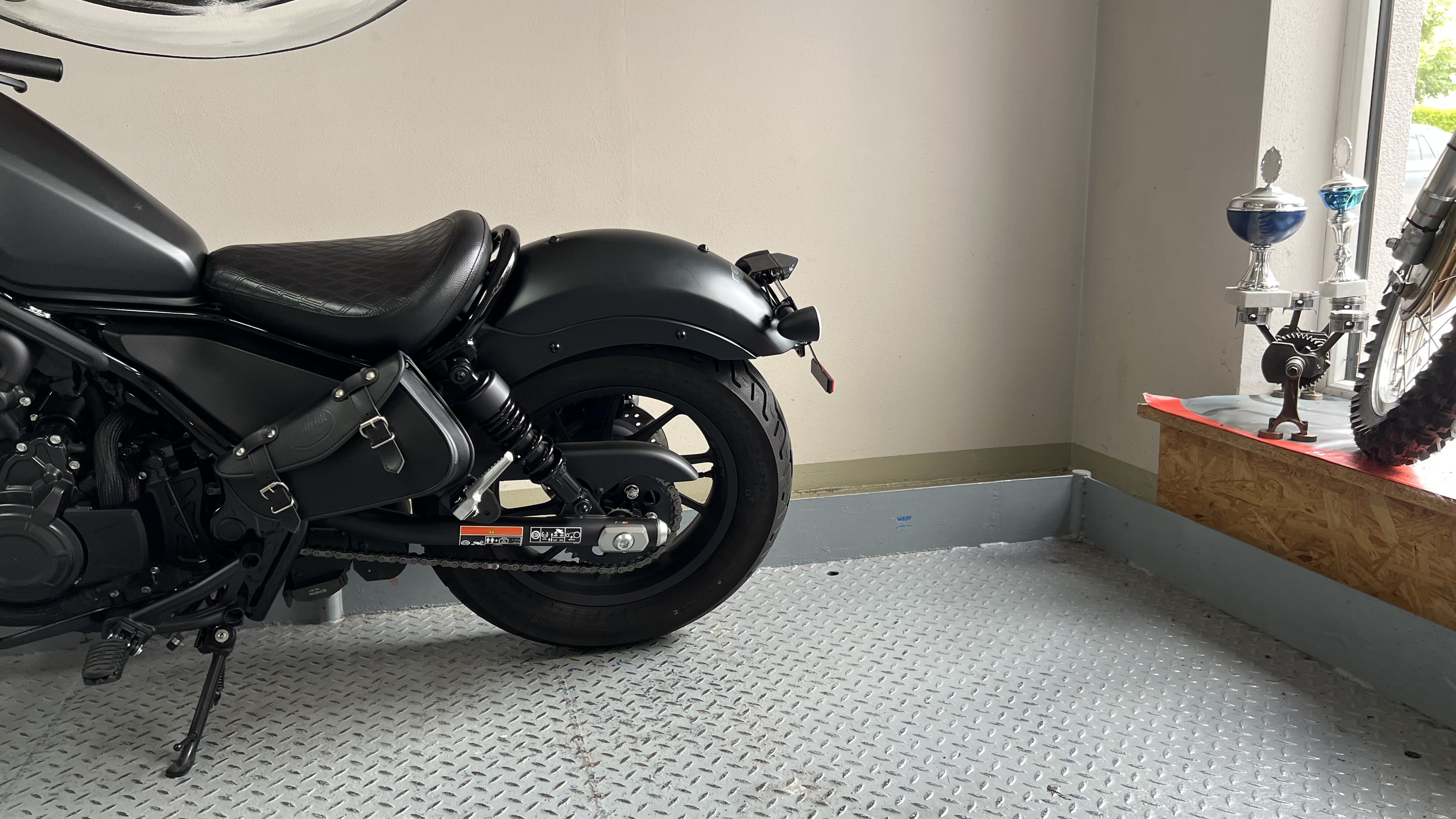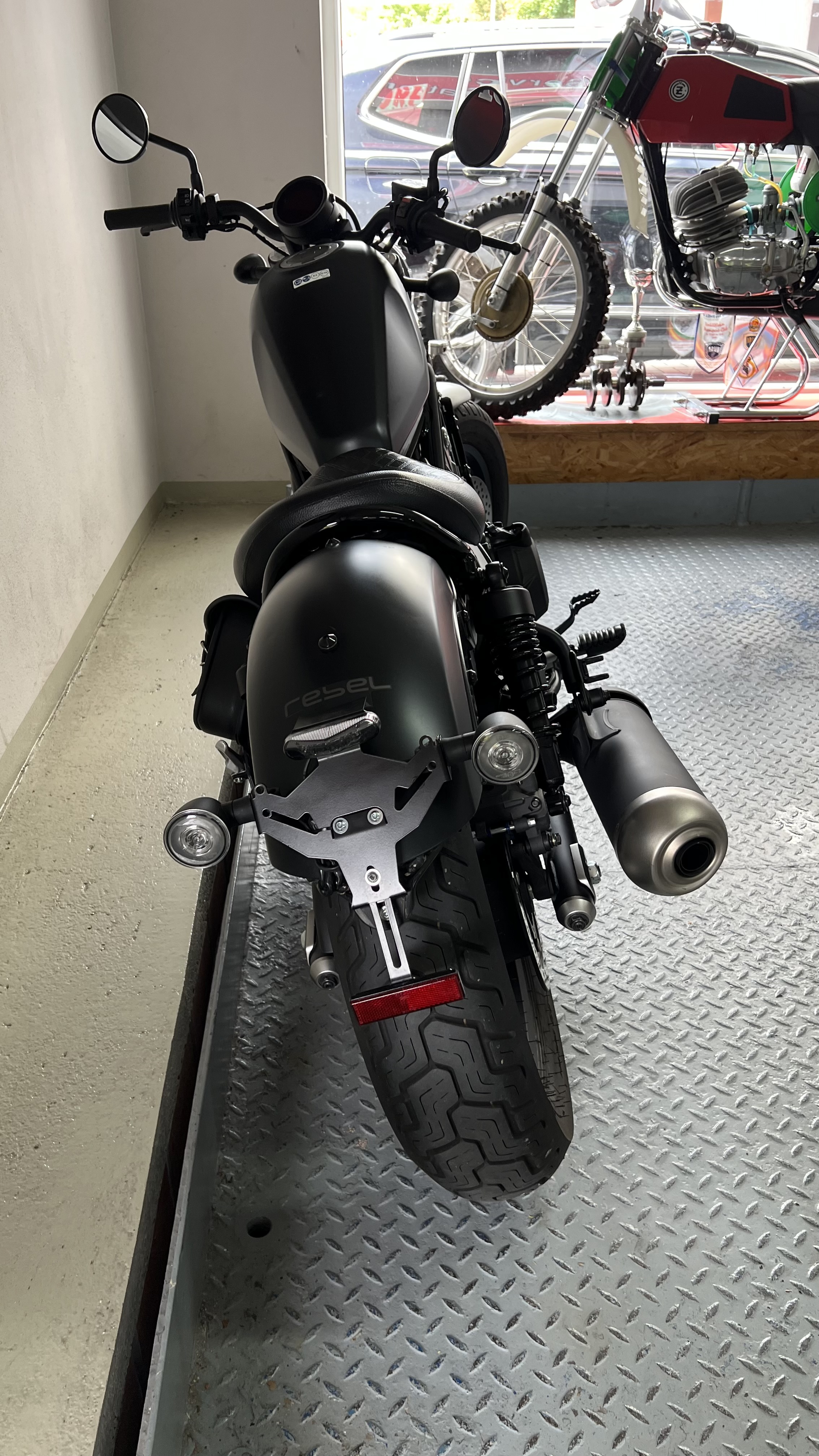 * viel Zubehör: Satteltasche li, gesteppter Fahrersitz, kleines Rücklicht,